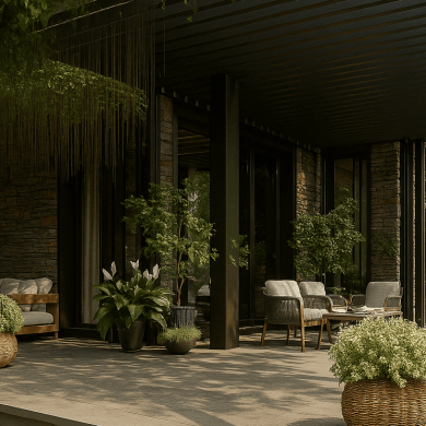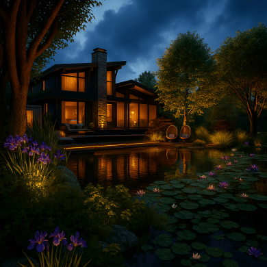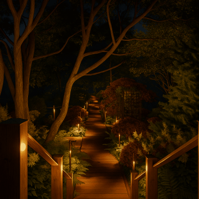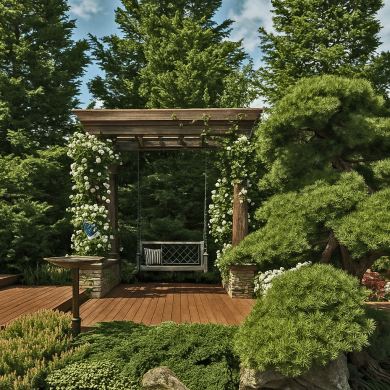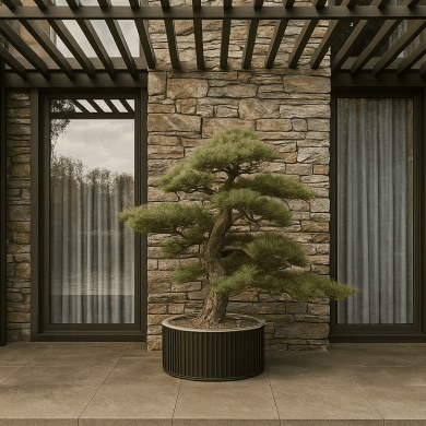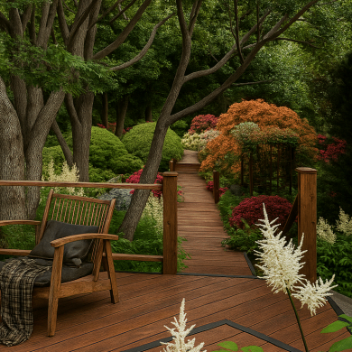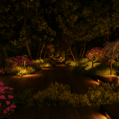 Главная идея сада — создать ощущение спокойствия и уединения, где роскошь выражена не в пышности, а в гармонии формы, света и природы. Каждый элемент — от раскидистого дерева до линии настила — встроен в общую композицию и поддерживает ощущение целостности пространства.
