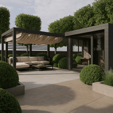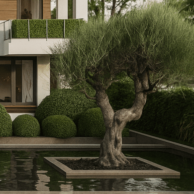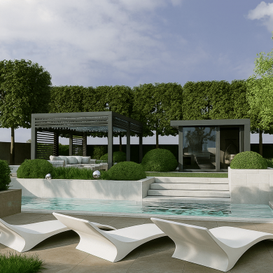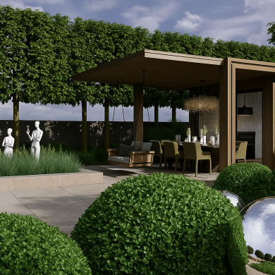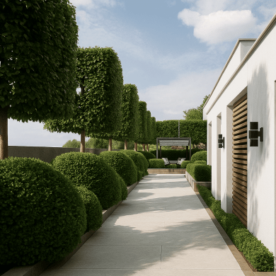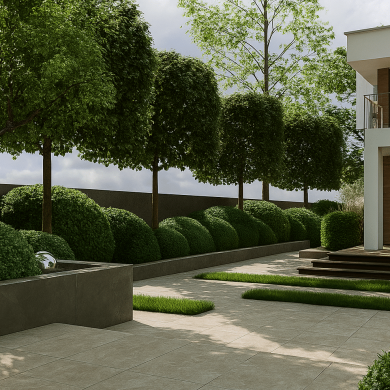 Такой подход подчёркивает архитектуру участка и создаёт ощущение современной сдержанной роскоши.